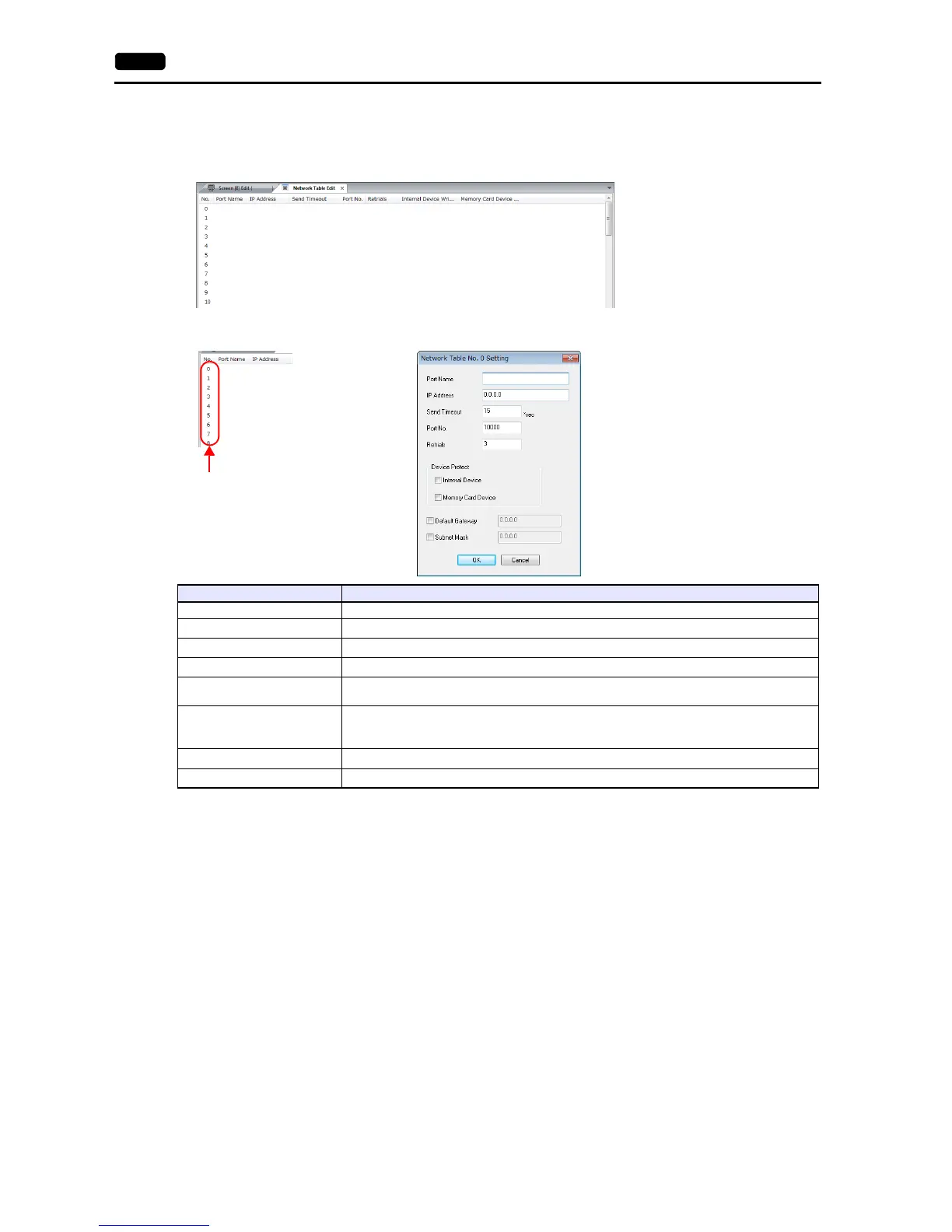 Double-click a number in the No. column to display the [Network Table Setting] dialog. An IP address and other items can be