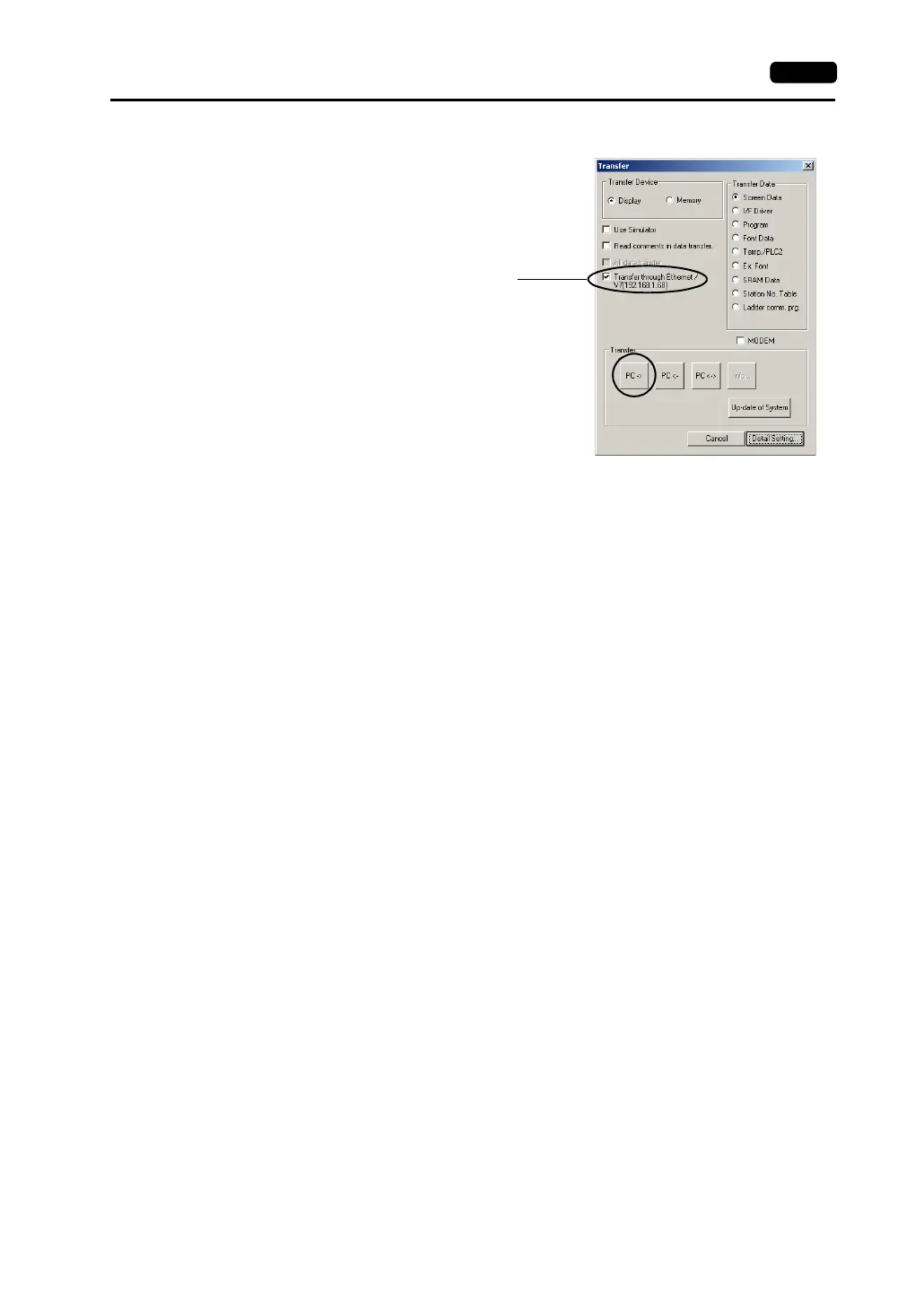 5. Check the IP address, and click [PC->].