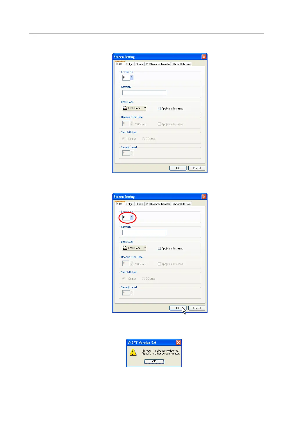 3. In the [Main] tab window, change the number for [Screen No.] to the unused number and click