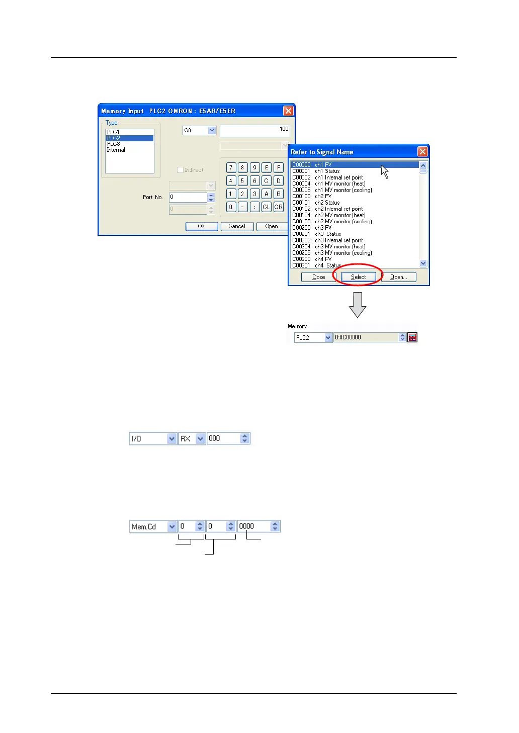 Select the desired address and click the [Select] button. The memory address is set and the former