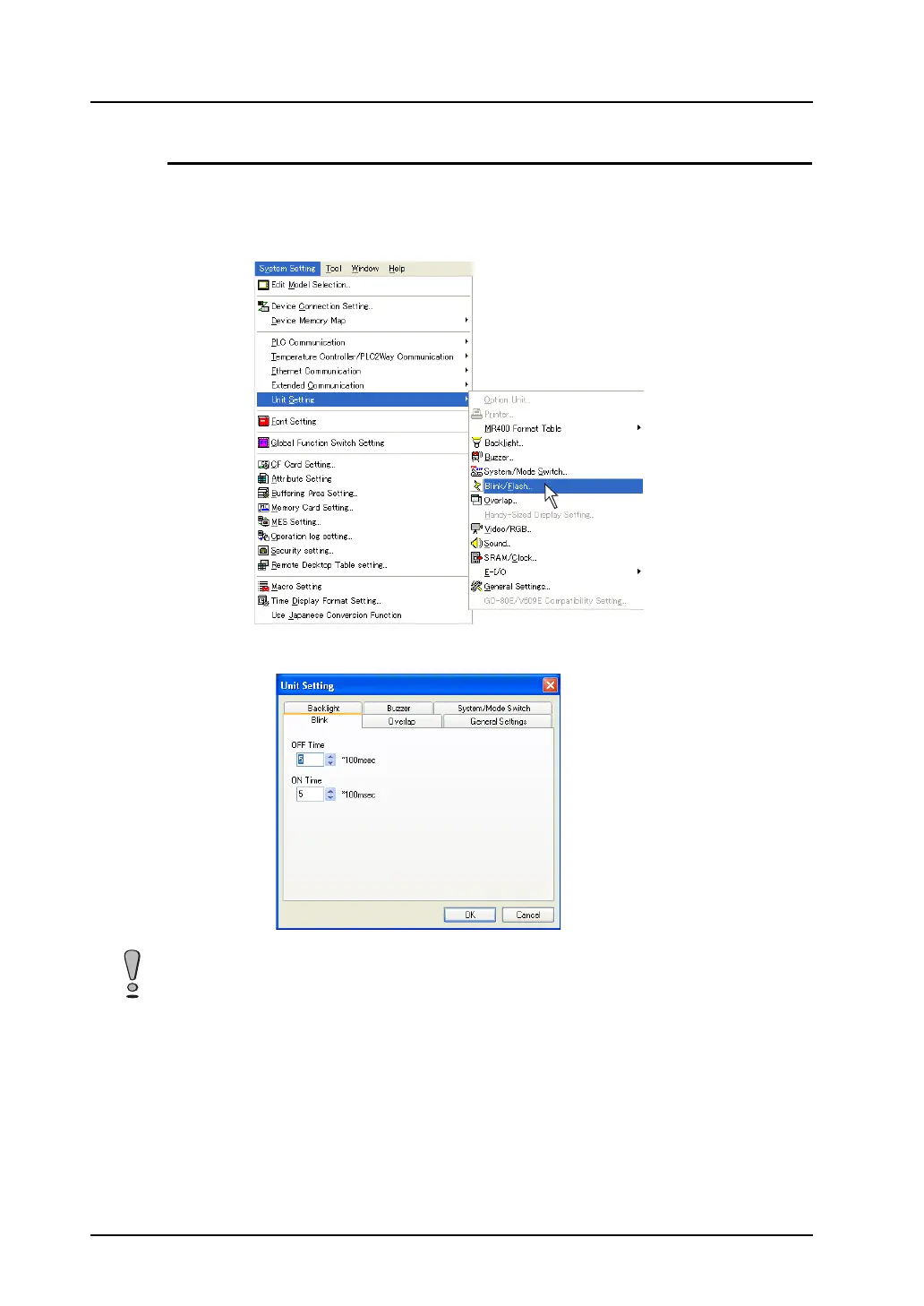 1. Select [System Setting] → [Unit Setting] → [Blink/Flash].