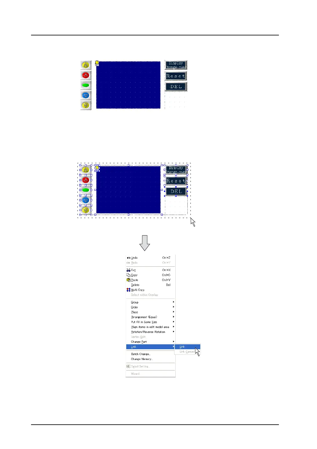 4. When the layout is determined, select all parts to be linked, and click [Link] selected from [Link] in