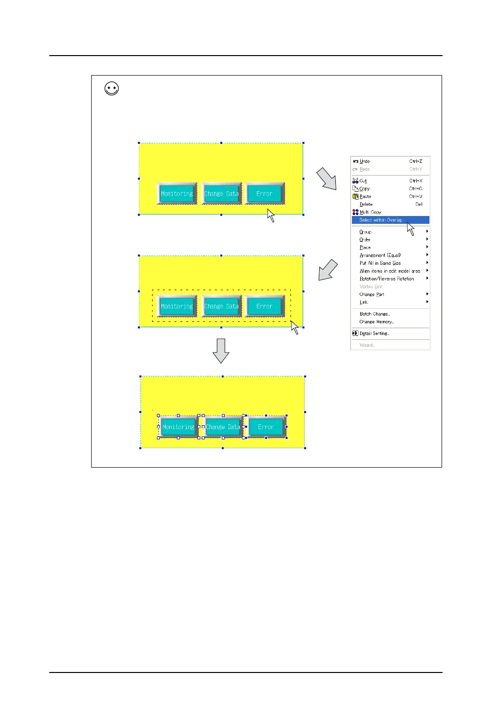 The other method is clicking [Select within Overlap] from the right-click menu and enclosing parts to