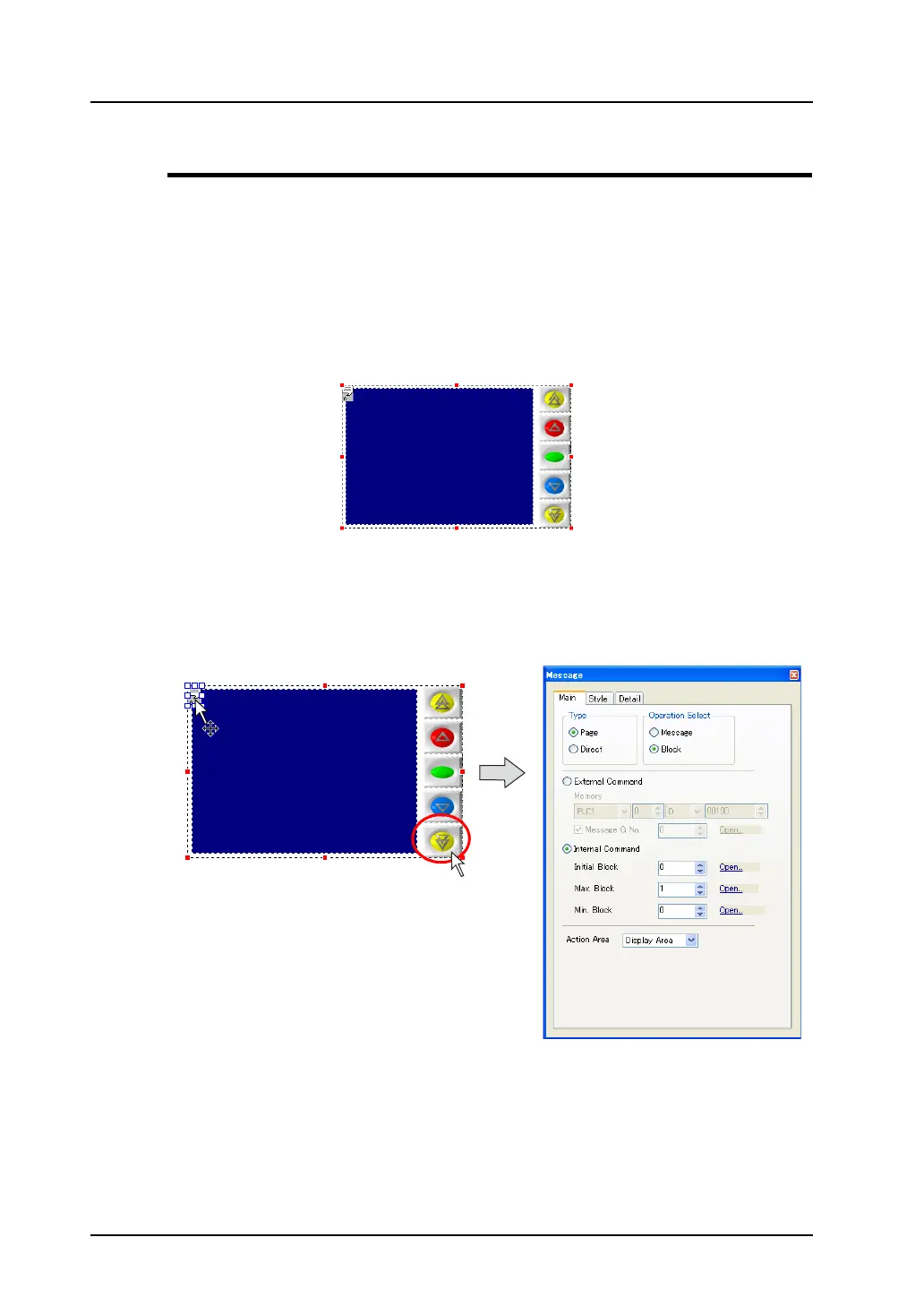1. Click [Parts] → [Message] → [Message] or [Comment Display], or drag the part from the parts list