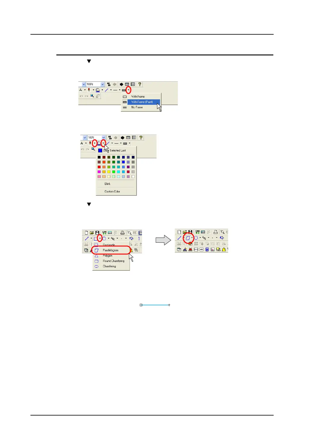 1. Click the “ ” mark on the right of the [Frame Type] icon on the toolbar.