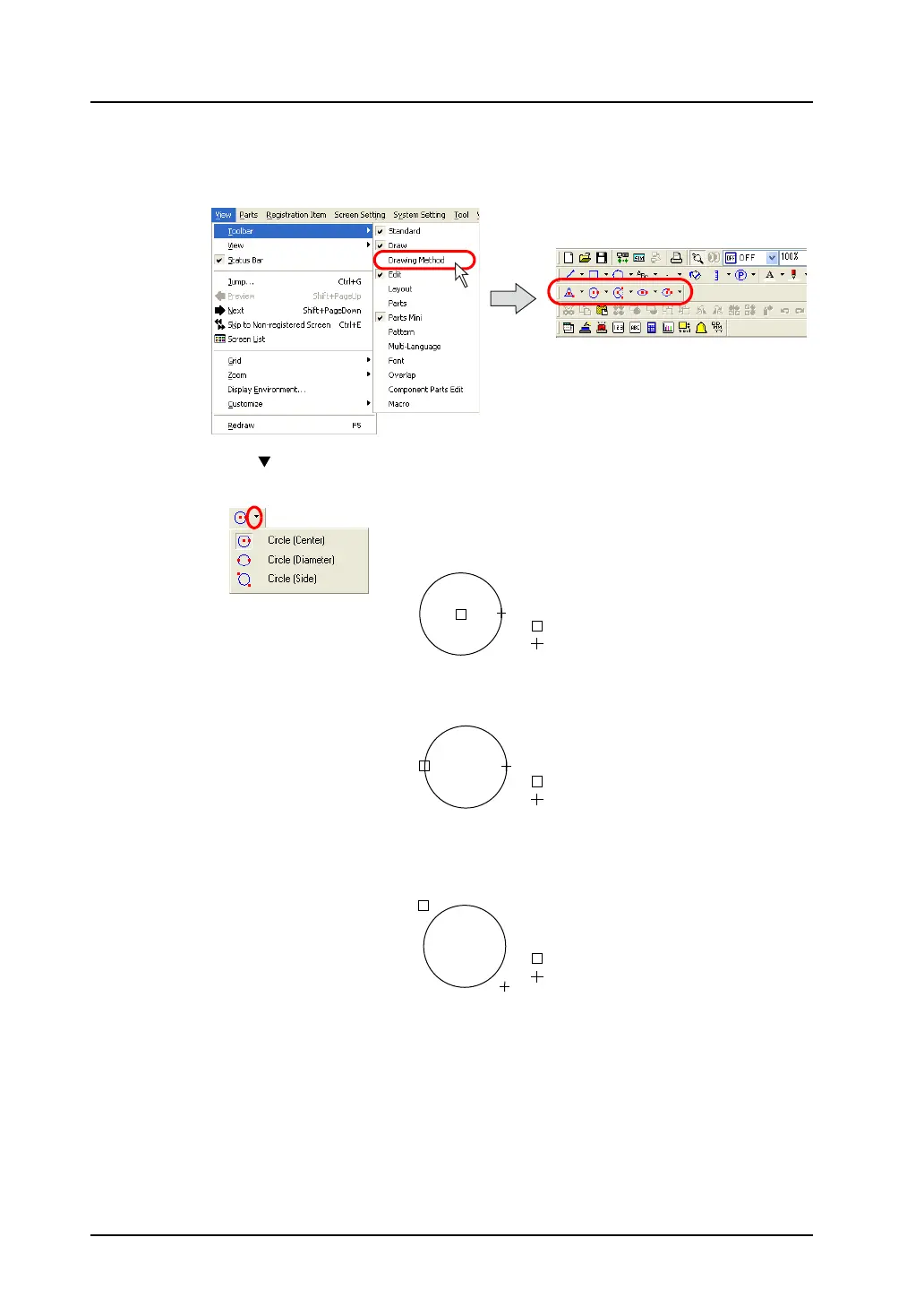 Click [View] → [Toolbar] → [Drawing Method].