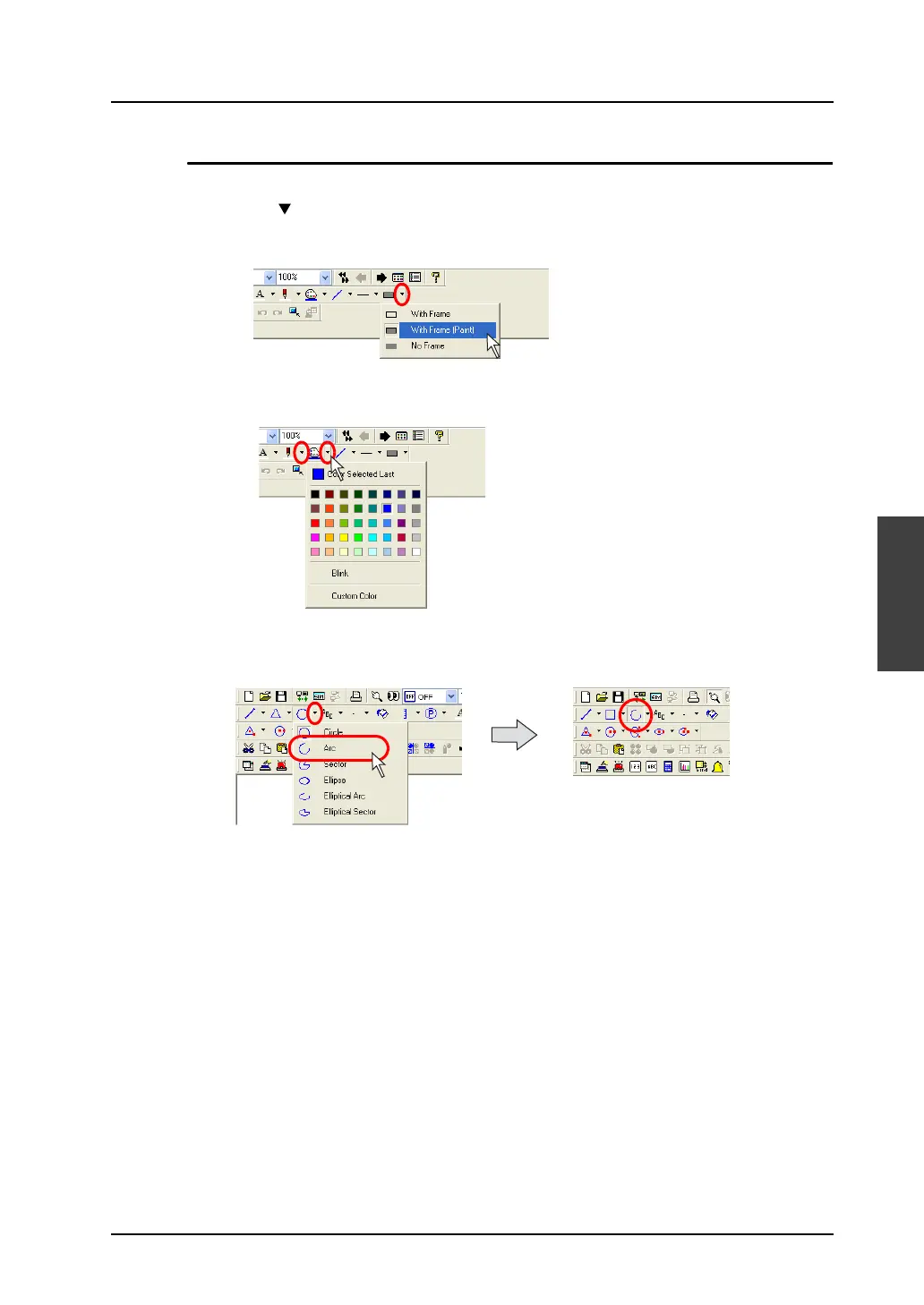 1. Click the “ ” mark on the right of the [Frame Type] icon on the toolbar.
