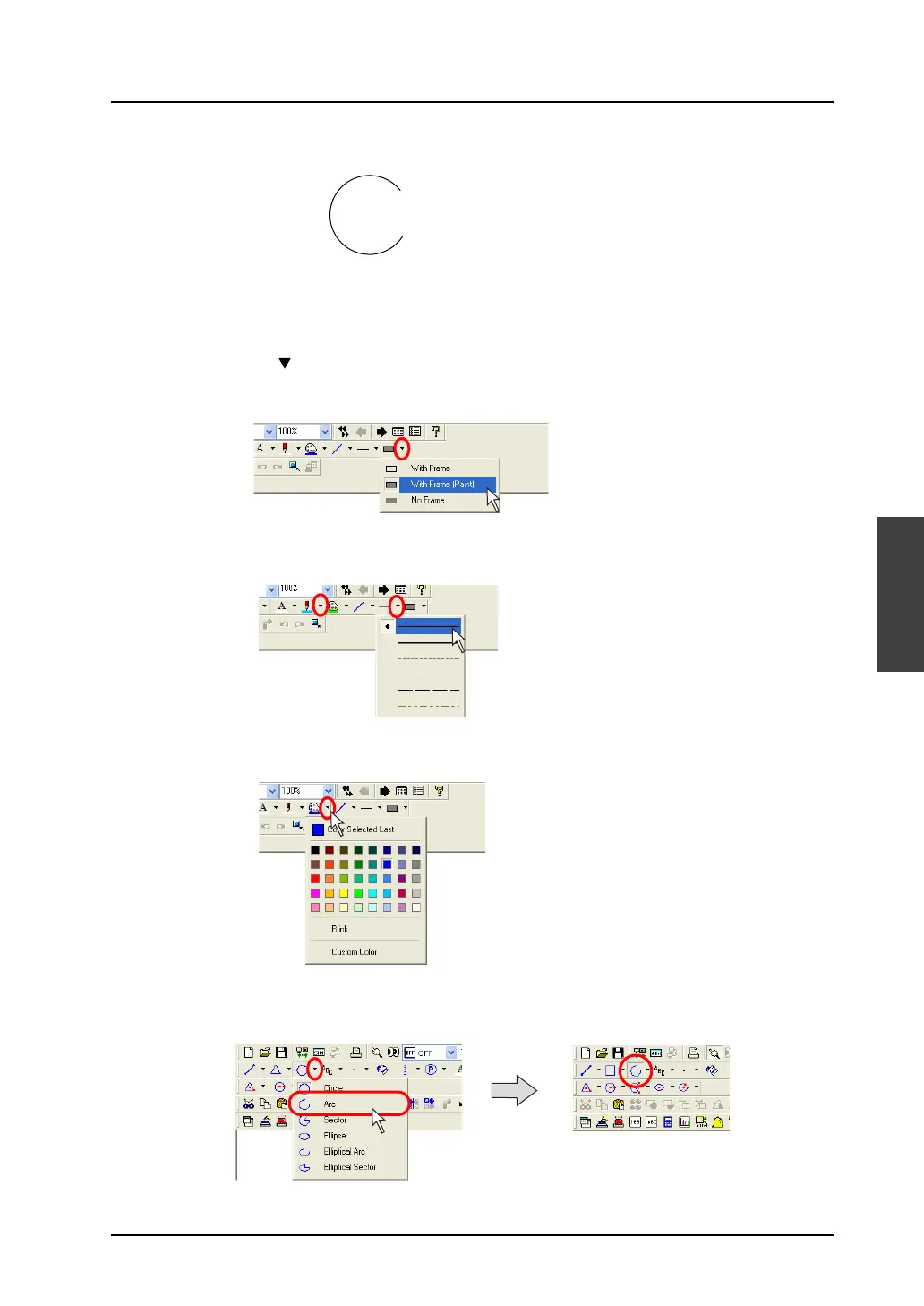 4. Click the [Arc] or [Sector] icon on the toolbar.