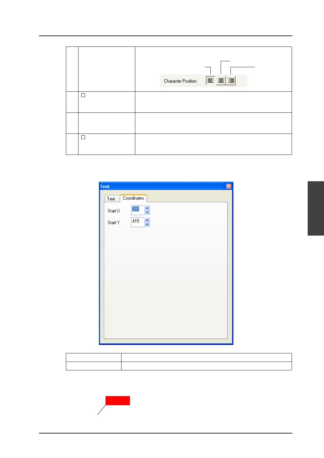 Start Y Specify the Y coordinate at the lower left corner of the item in dots.