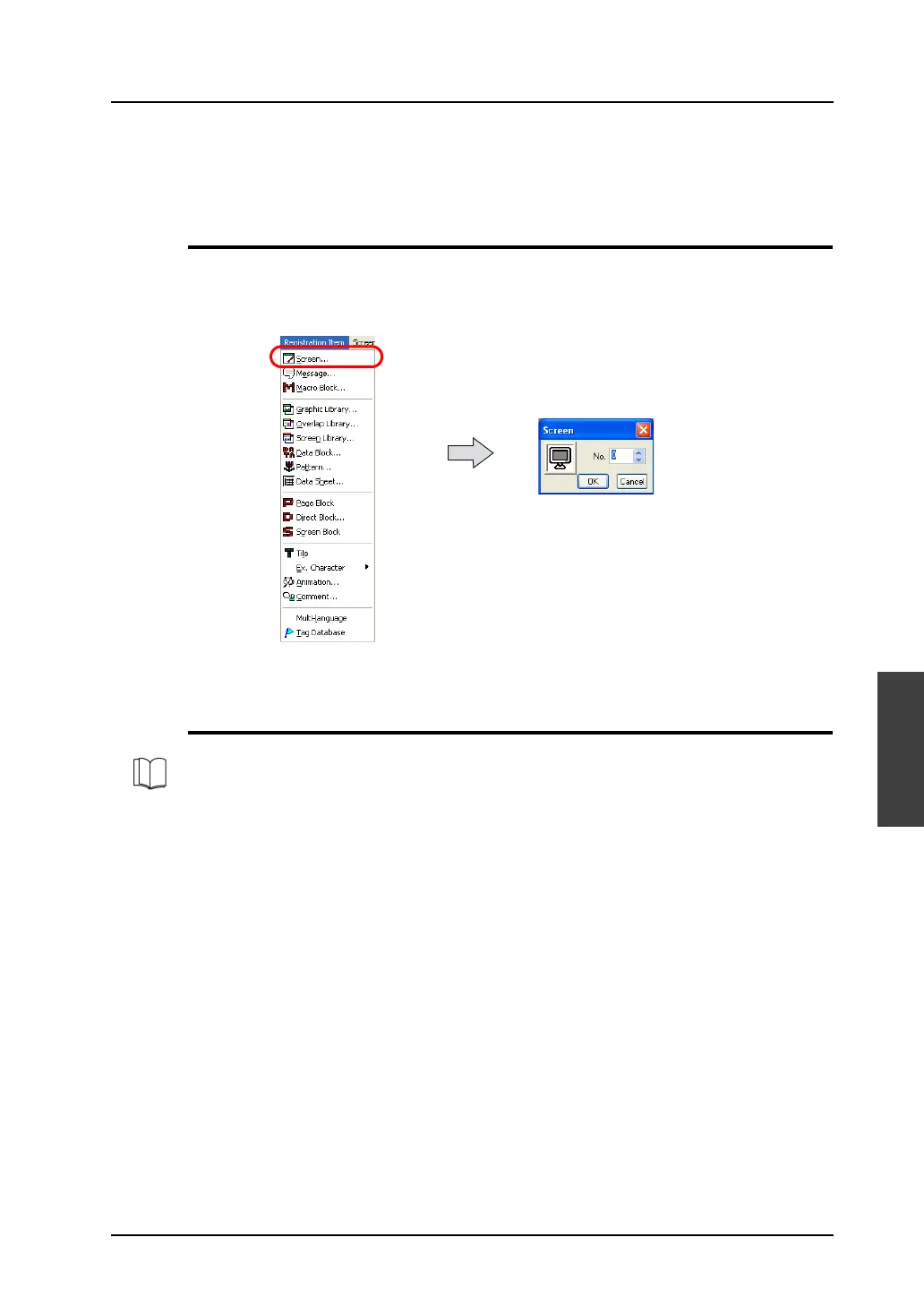 opened, select [Screen] from the [Registration Item] menu.