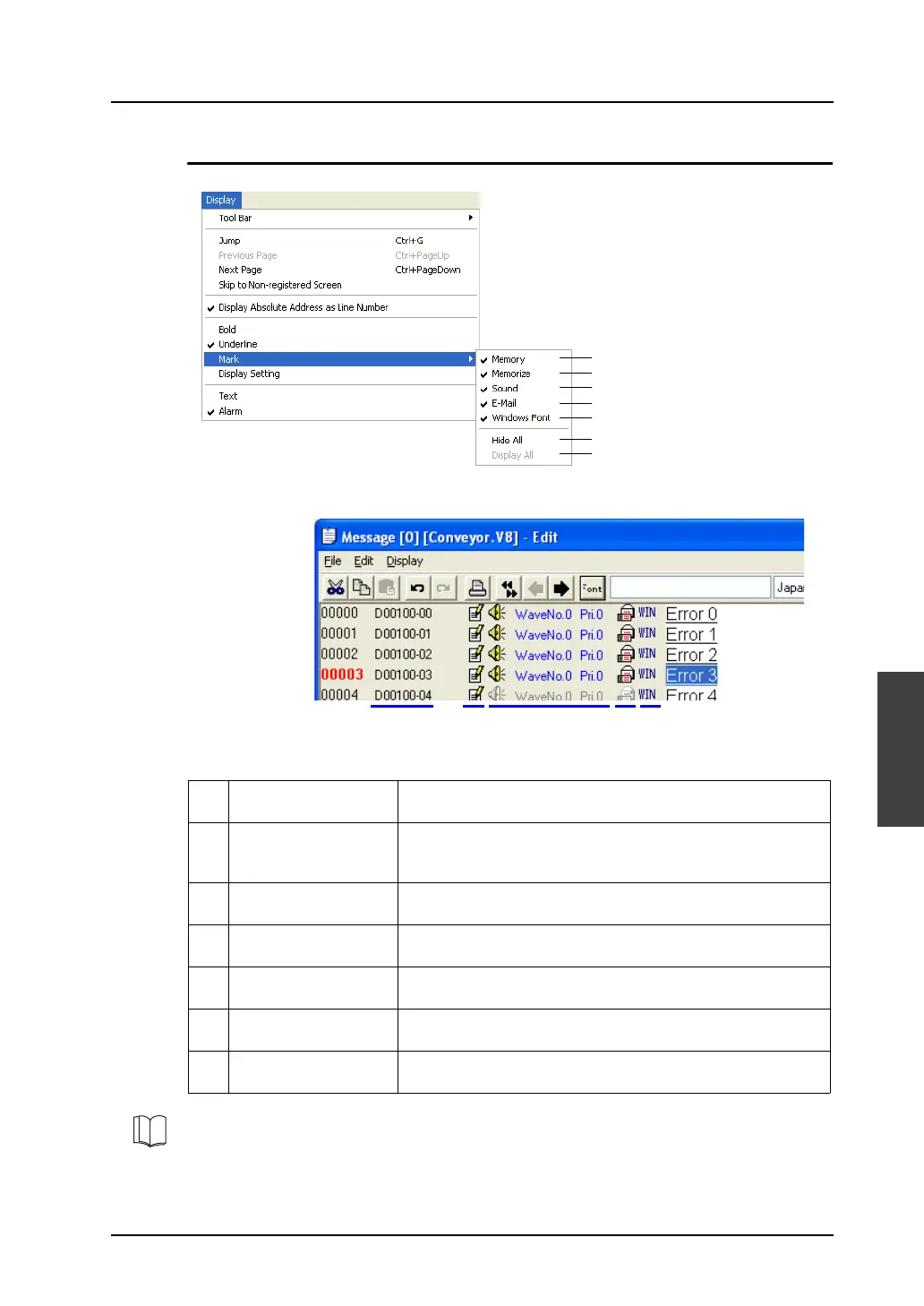 5 Windows Font When this command is selected, the column that indicates