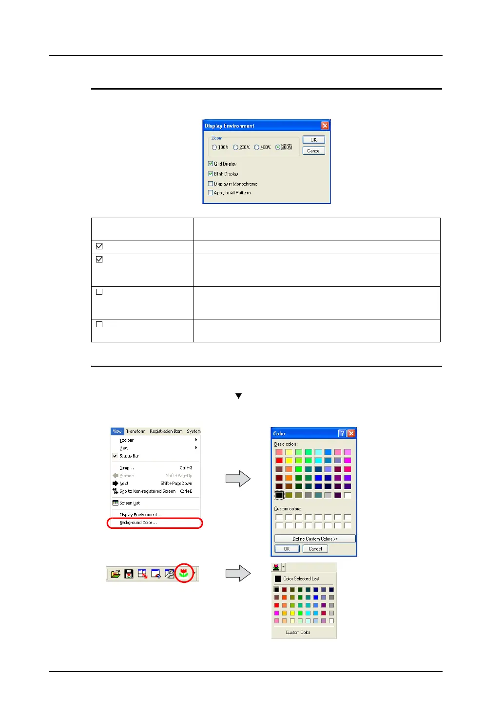Clicking [Display Environment] from the [View] menu or the [Display Environment] icon brings up the