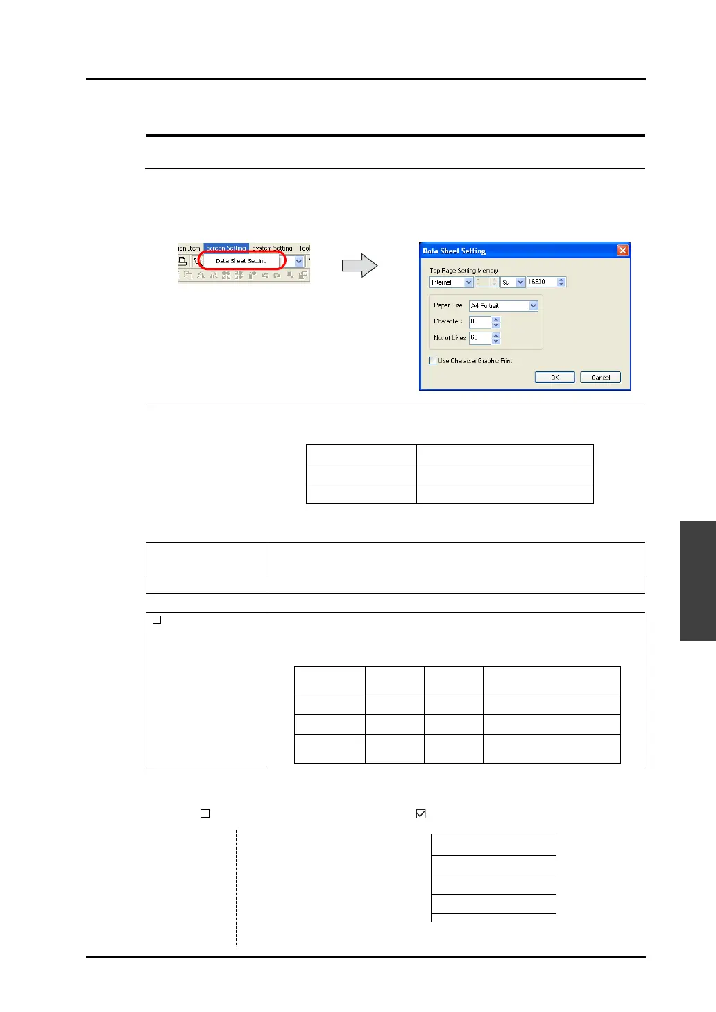 It is necessary to set the size of a data sheet, the number of characters, etc. in the [Data Sheet Setting]