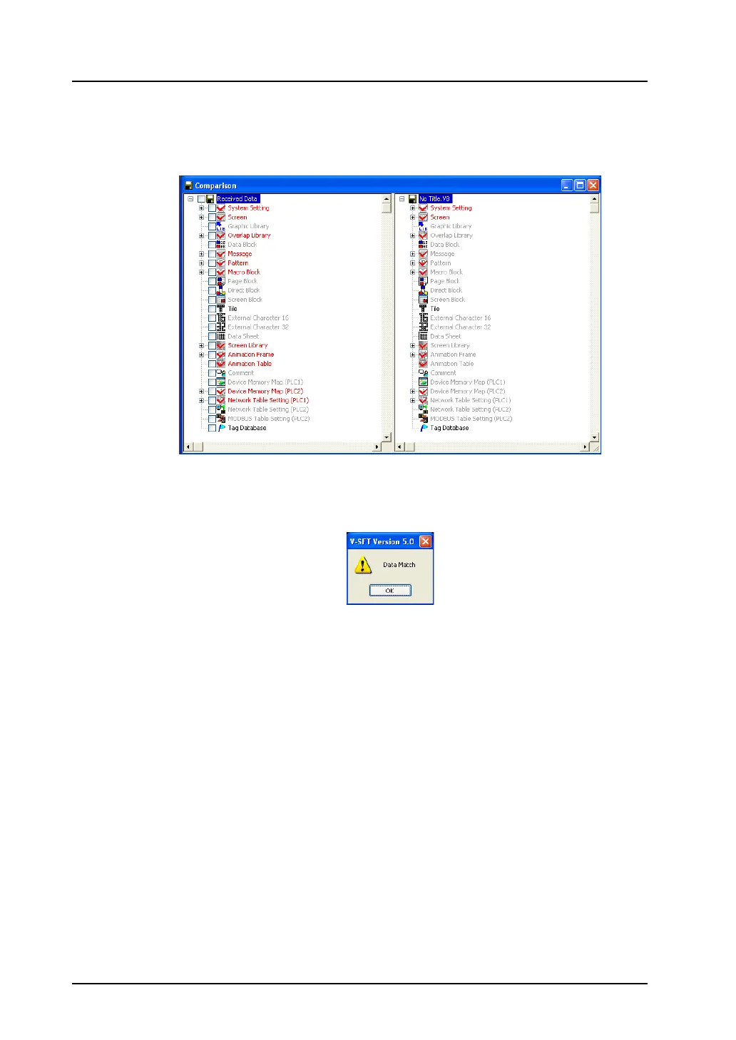 Click [OK]. The [Comparison] window showing the result of comparison is displayed.