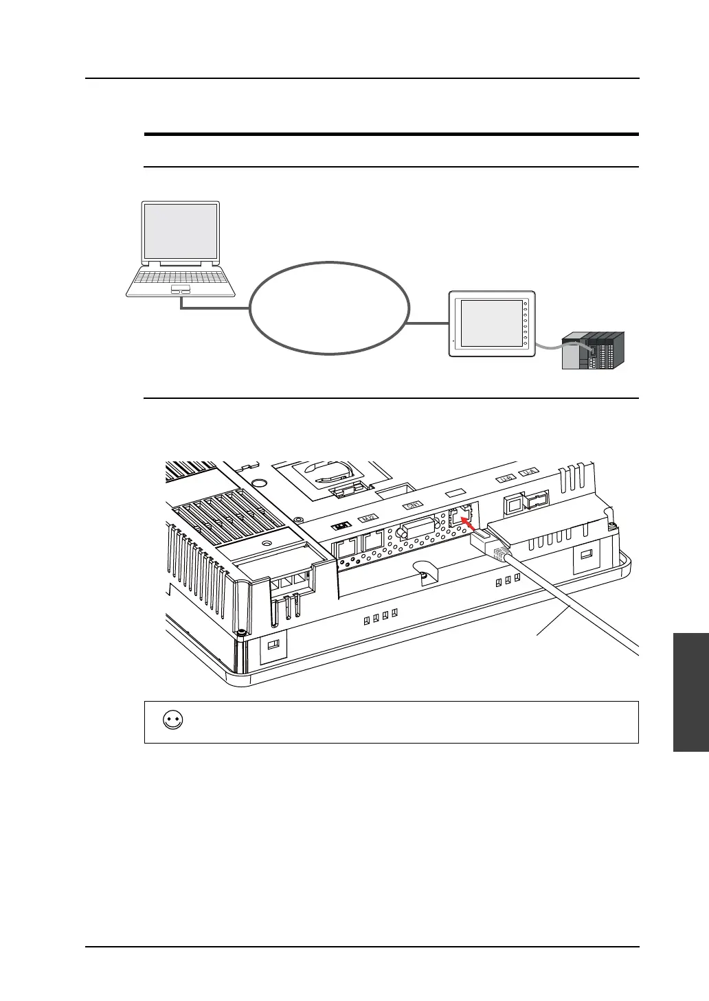 1. Connect the LAN port of MONITOUCH (or LAN port of CU-03-3) and the computer using a LAN