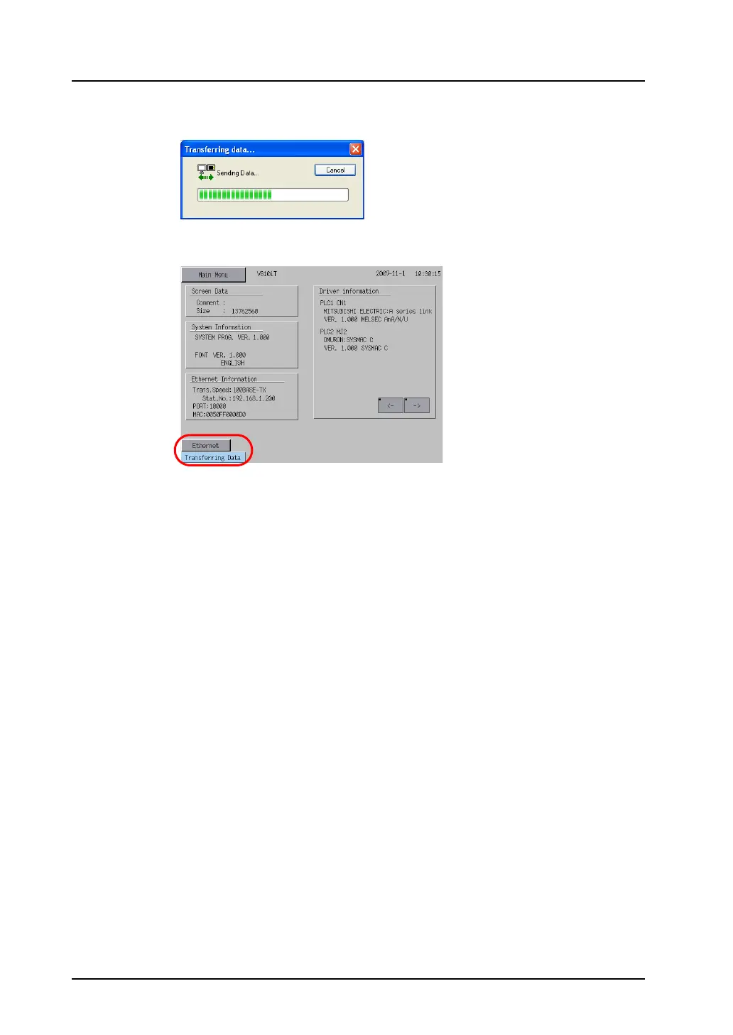 9. During data transfer, the following dialog is displayed.