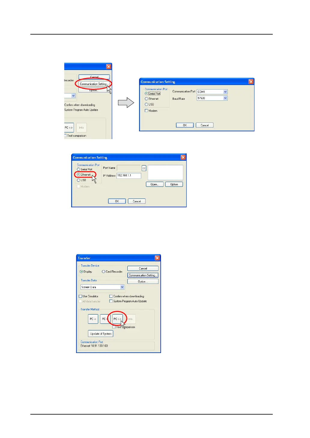 6. Select [Ethernet] for [Communication Port].