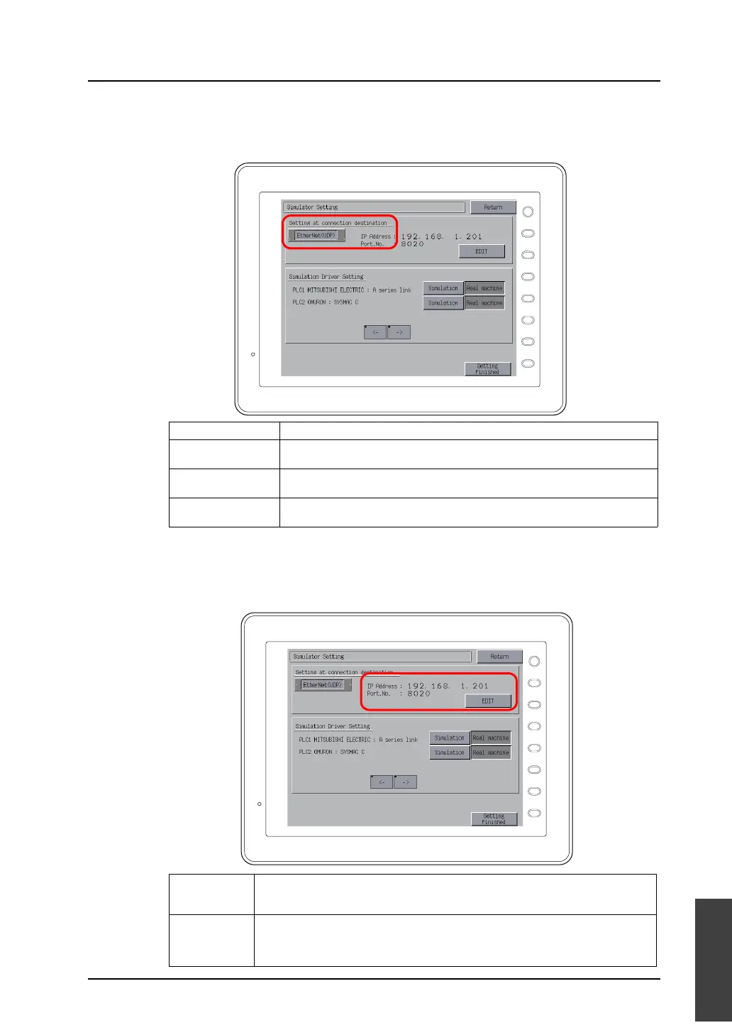 Port No. Specify the port number for Simulator. Pressing the [EDIT] switch calls up the keypad.