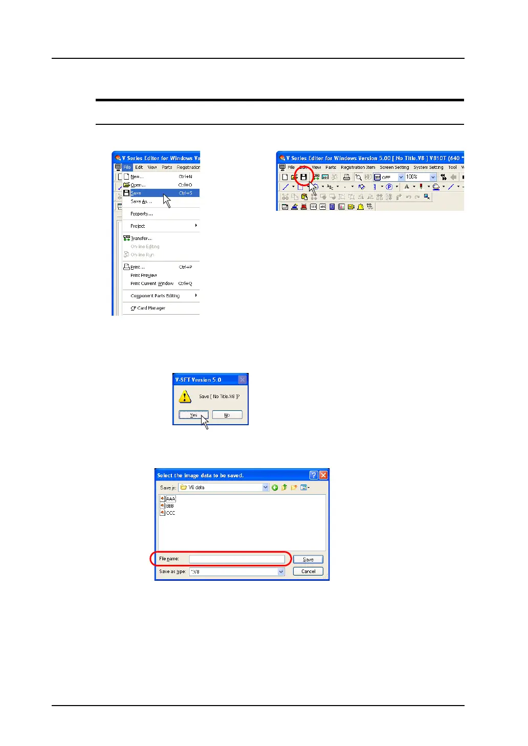 1. Click [Save] from the [File] menu or click the [Save] icon on the toolbar.
