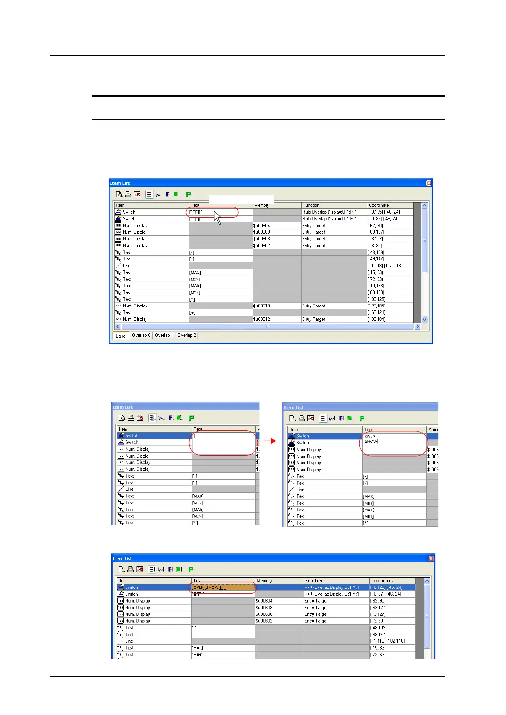 1. Double-click the [Text] cell of your target switch or lamp.