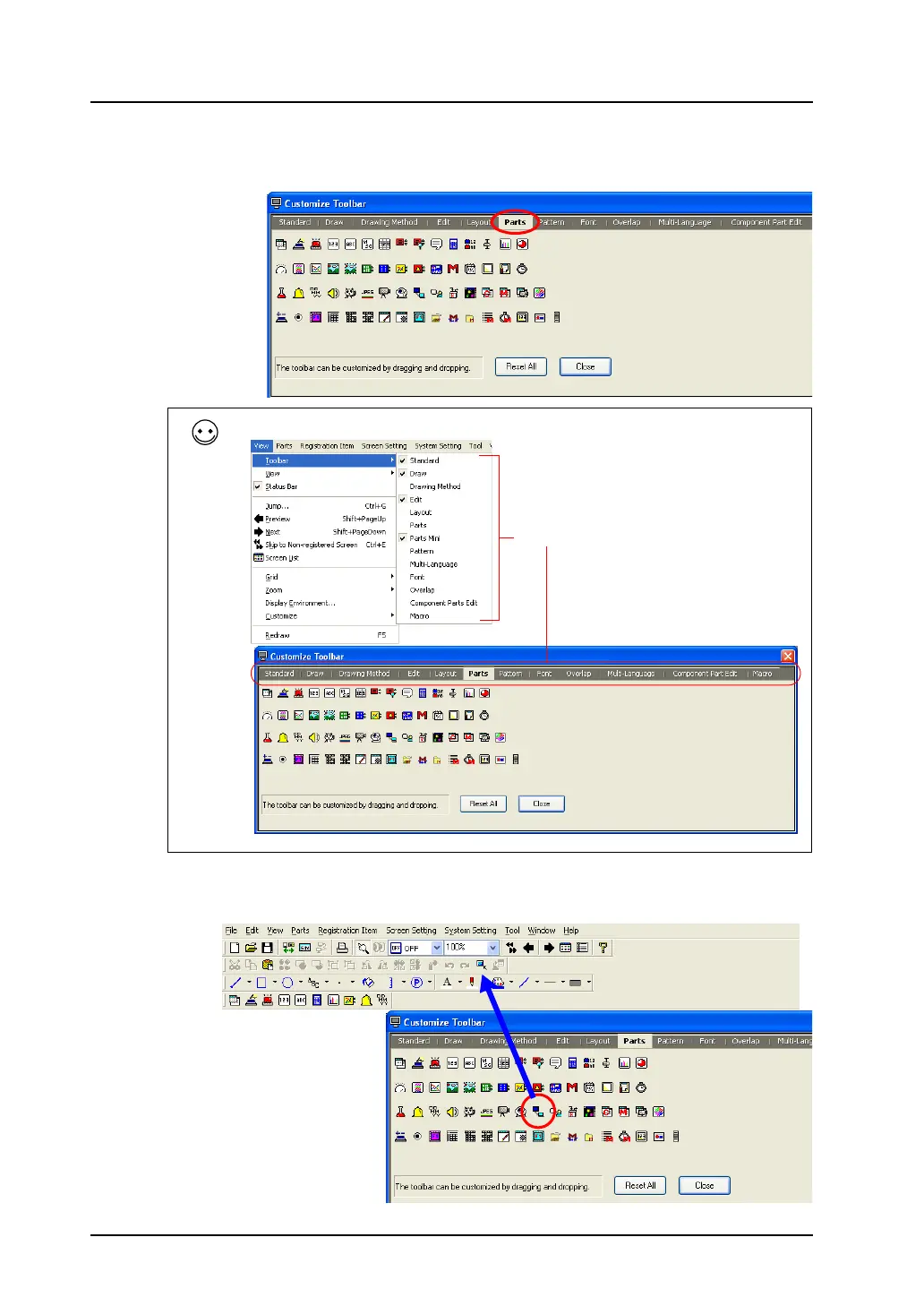Click the [Parts List] icon and drag it to the extreme right of the [Edit] toolbar.