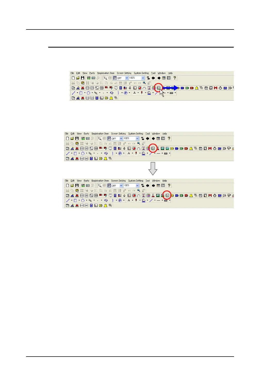 This section explains how to change the order of icons on the [Parts] toolbar as an example.