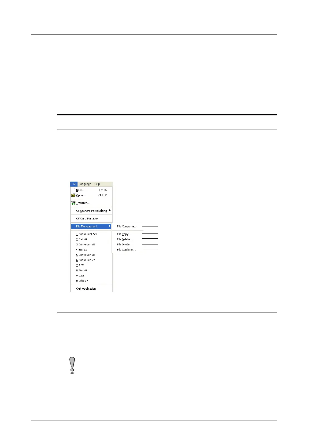 The following four types of files can be handled by the file management function.