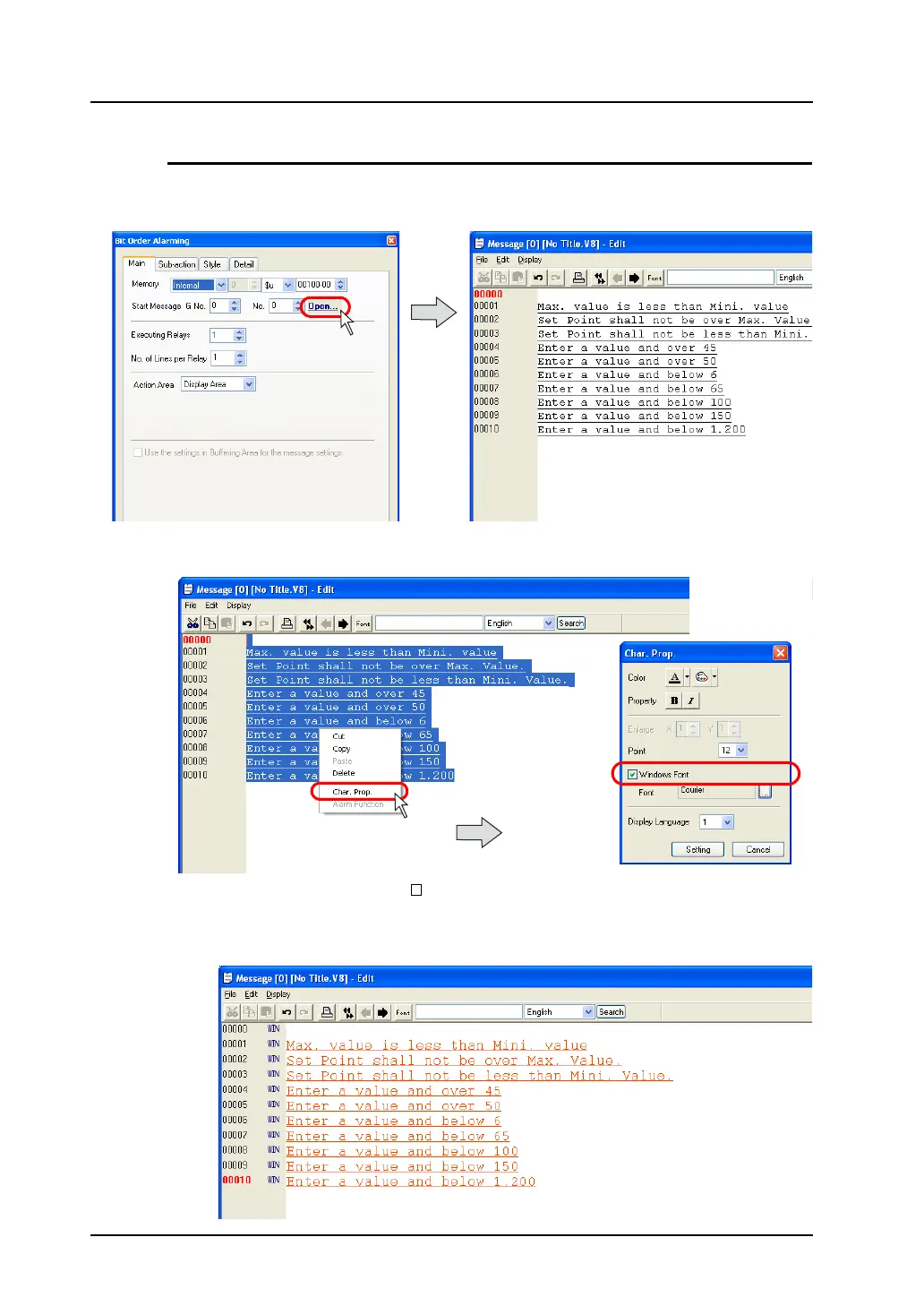 3. In the [Char. Prop.] dialog, check [ Windows Font]. Select the desired color, number of points,