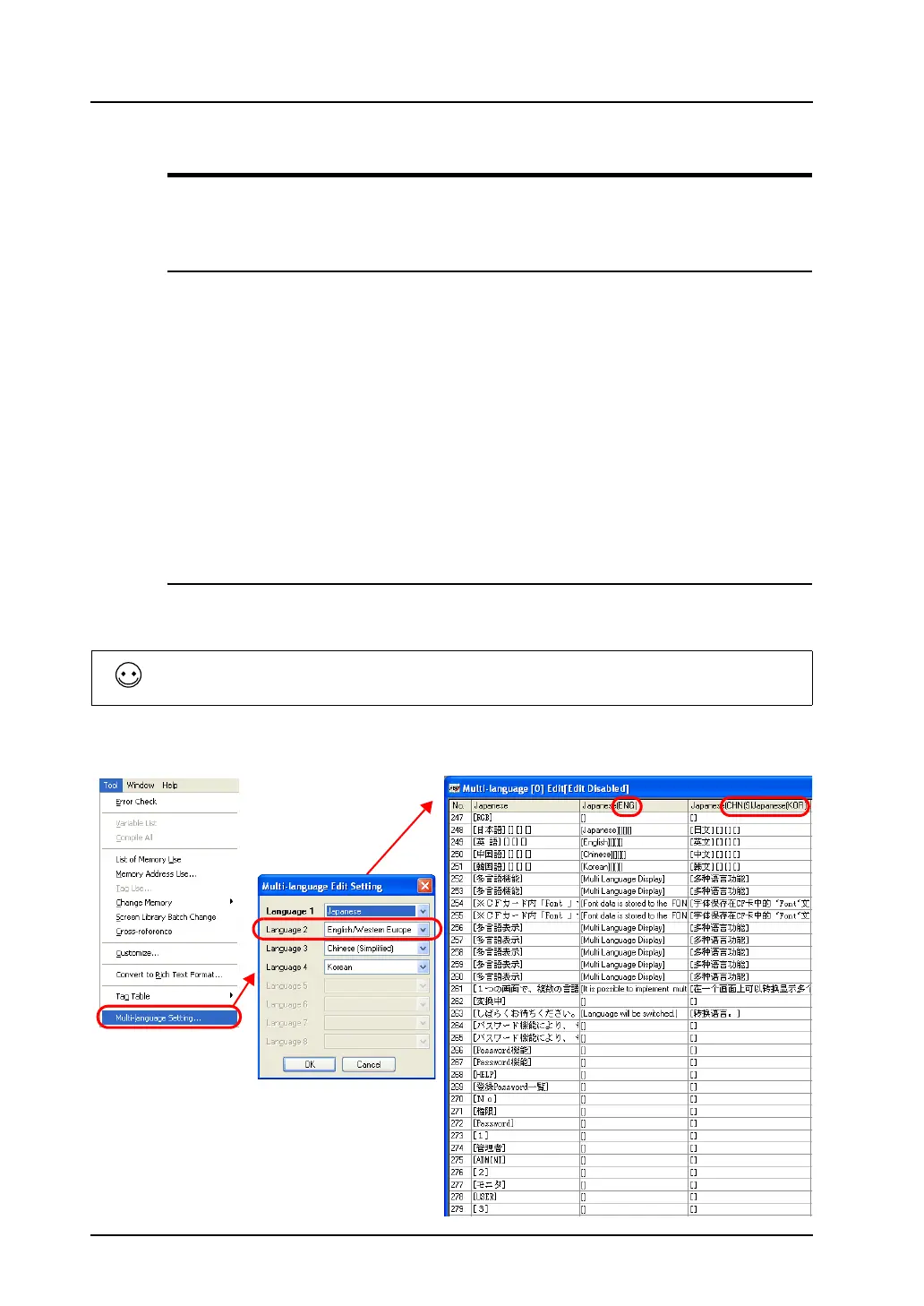 • Multi-language editing is performed basically on the screen in the editor software or in the