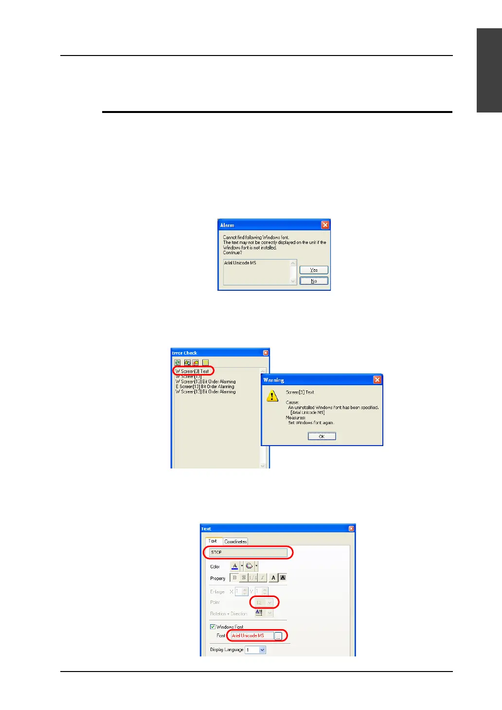 If any Windows fonts that are not installed on your computer are used in screen data, the text in such