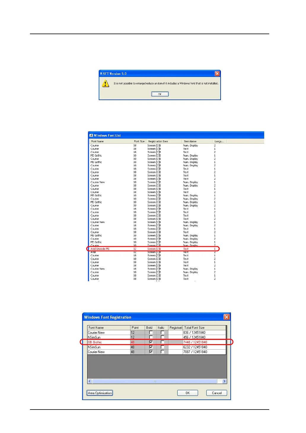 also in this window. Size change and additional registration are not allowed for the font.
