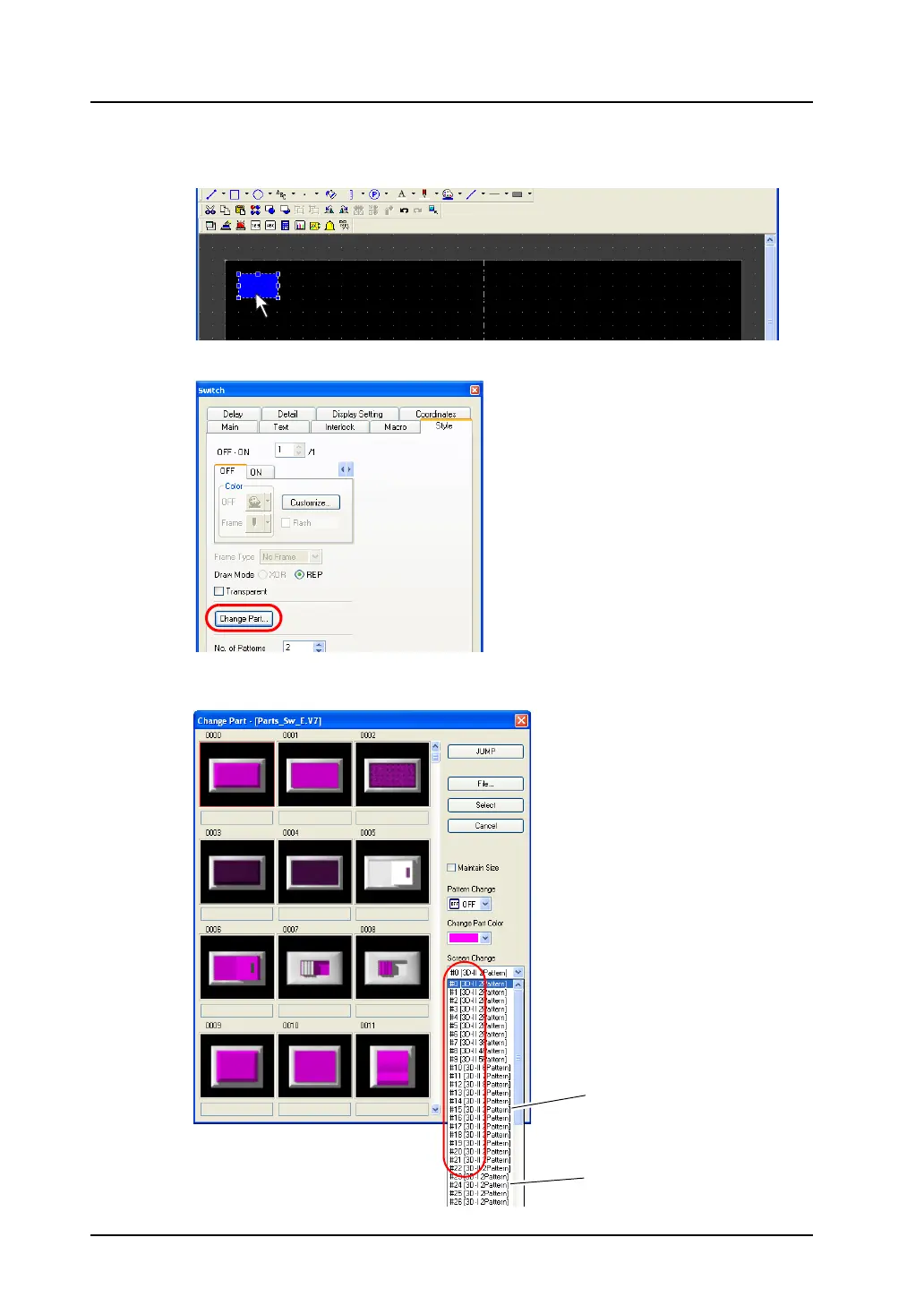 2. In the [Switch] dialog, open the [Style] tab window and click [Change Part].