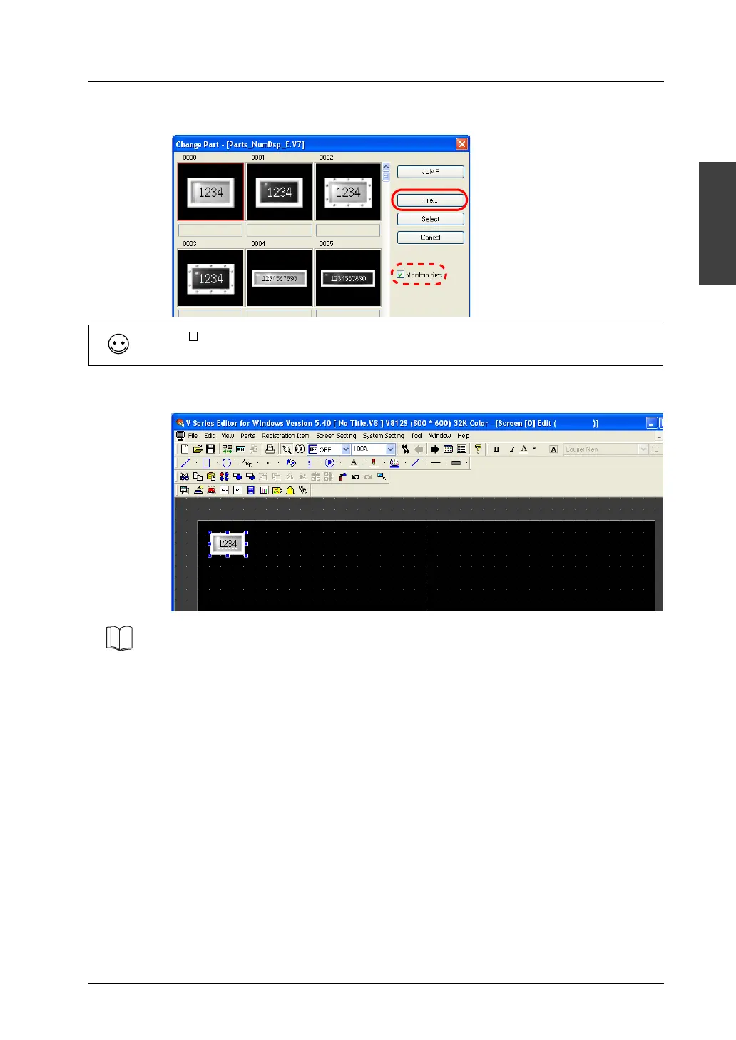 [With [ Maintain Size] checked, the size and setting of the existing part remain the same even after