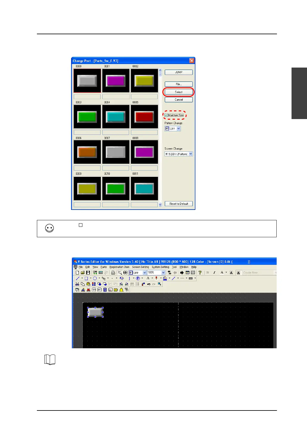 [With [ Maintain Size] checked, the size and setting of the existing part remain the same even after