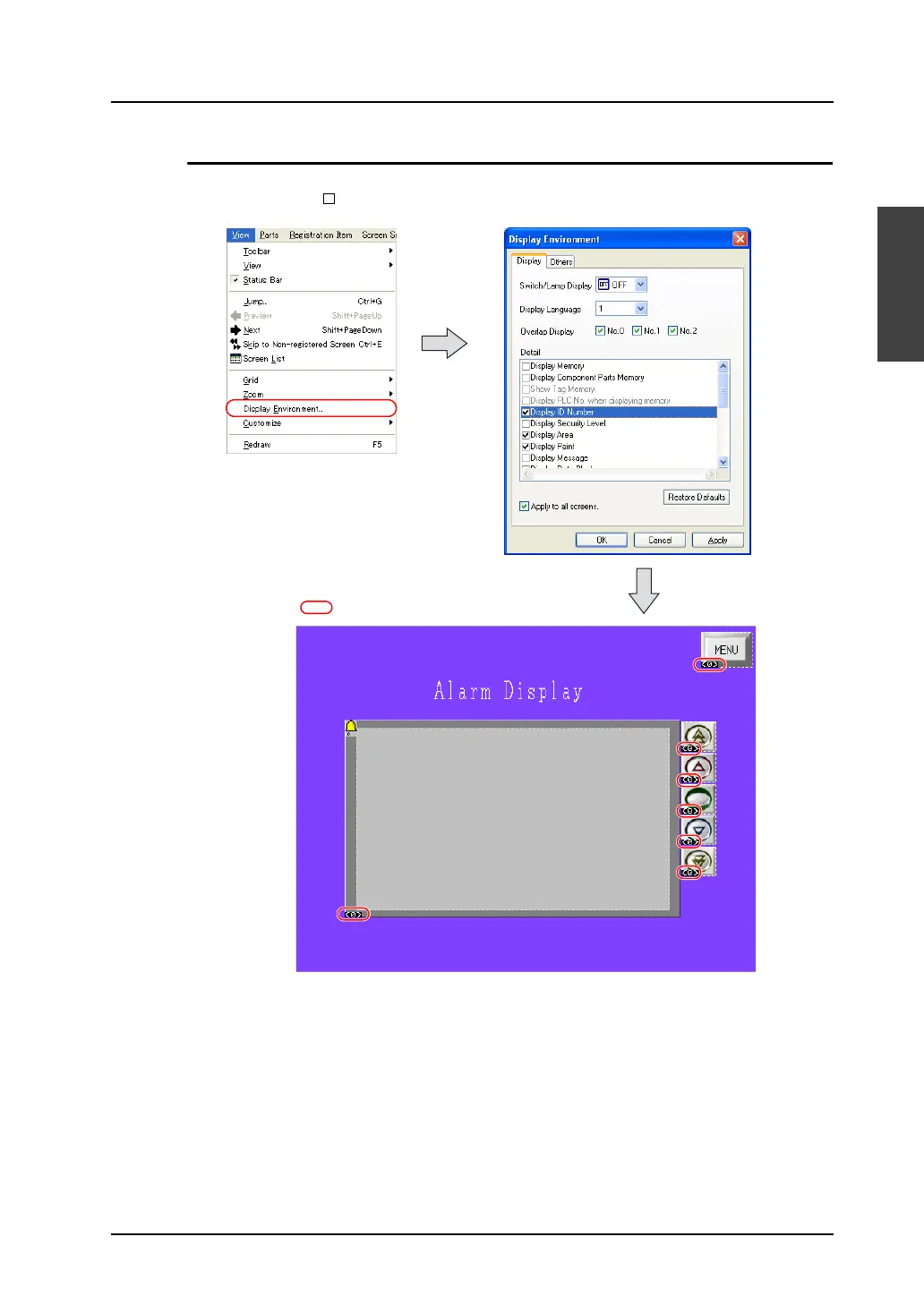 To check the ID number of the part placed on the screen, click [Display Environment] from the [View]