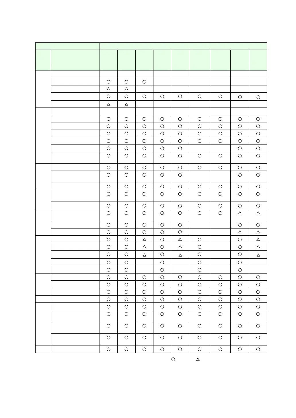 : Available : Optionally available ×: Not available