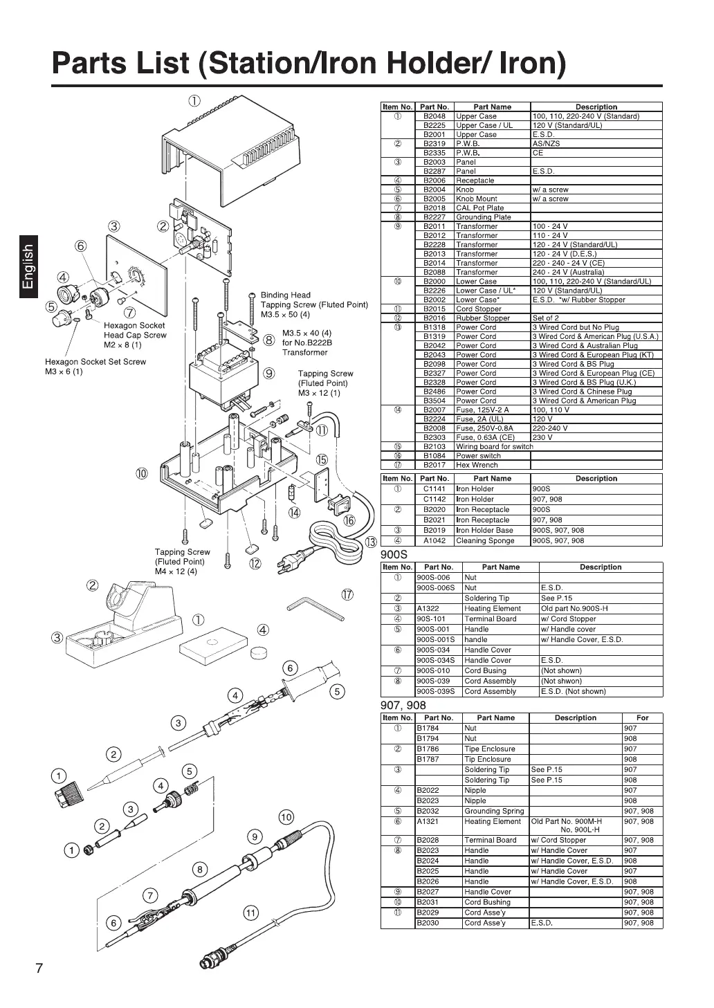 HAKO 936 - Parts List (Station;Iron Holder;Iron)