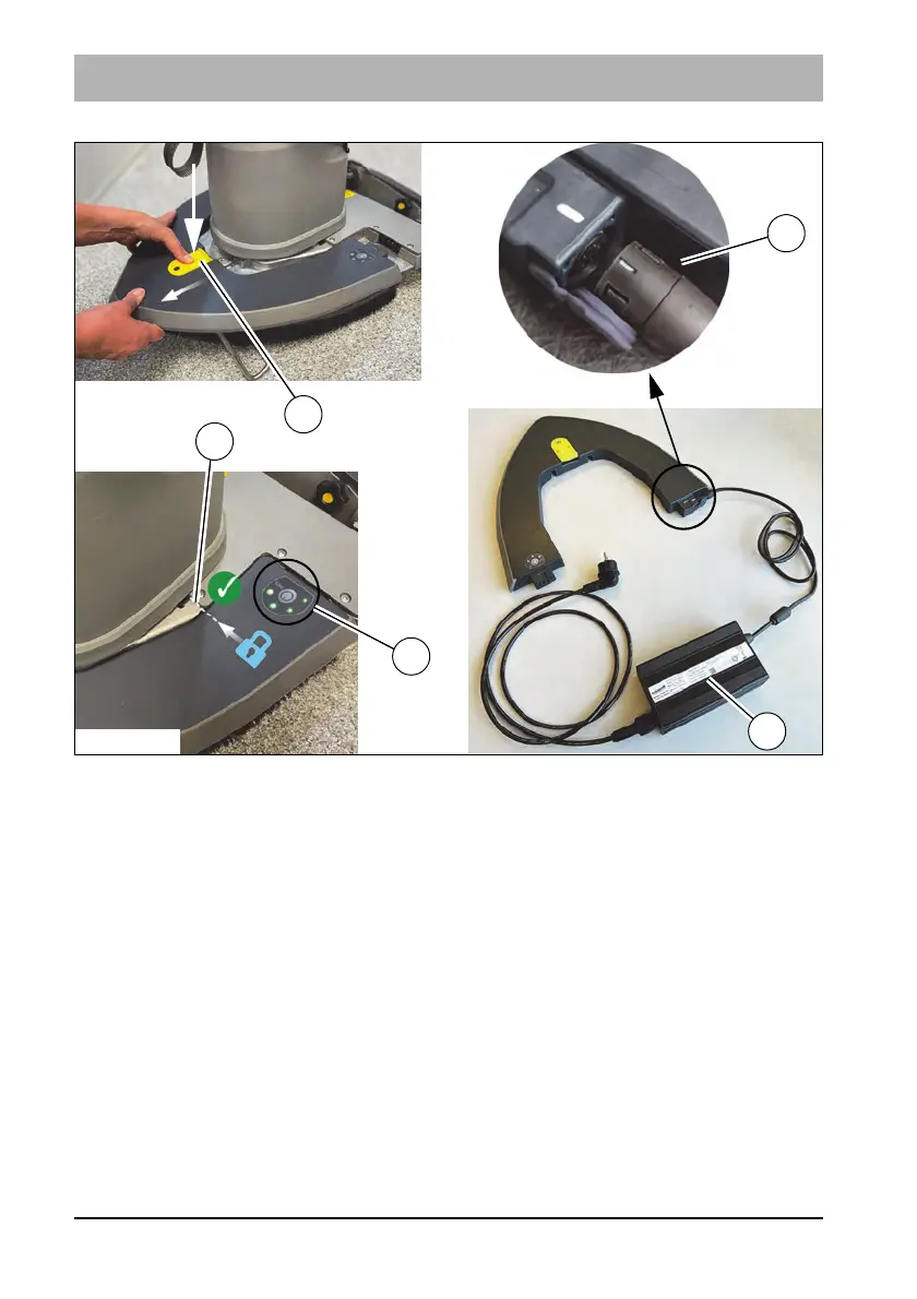 Observe correct positioning of the charging plug using the white line!