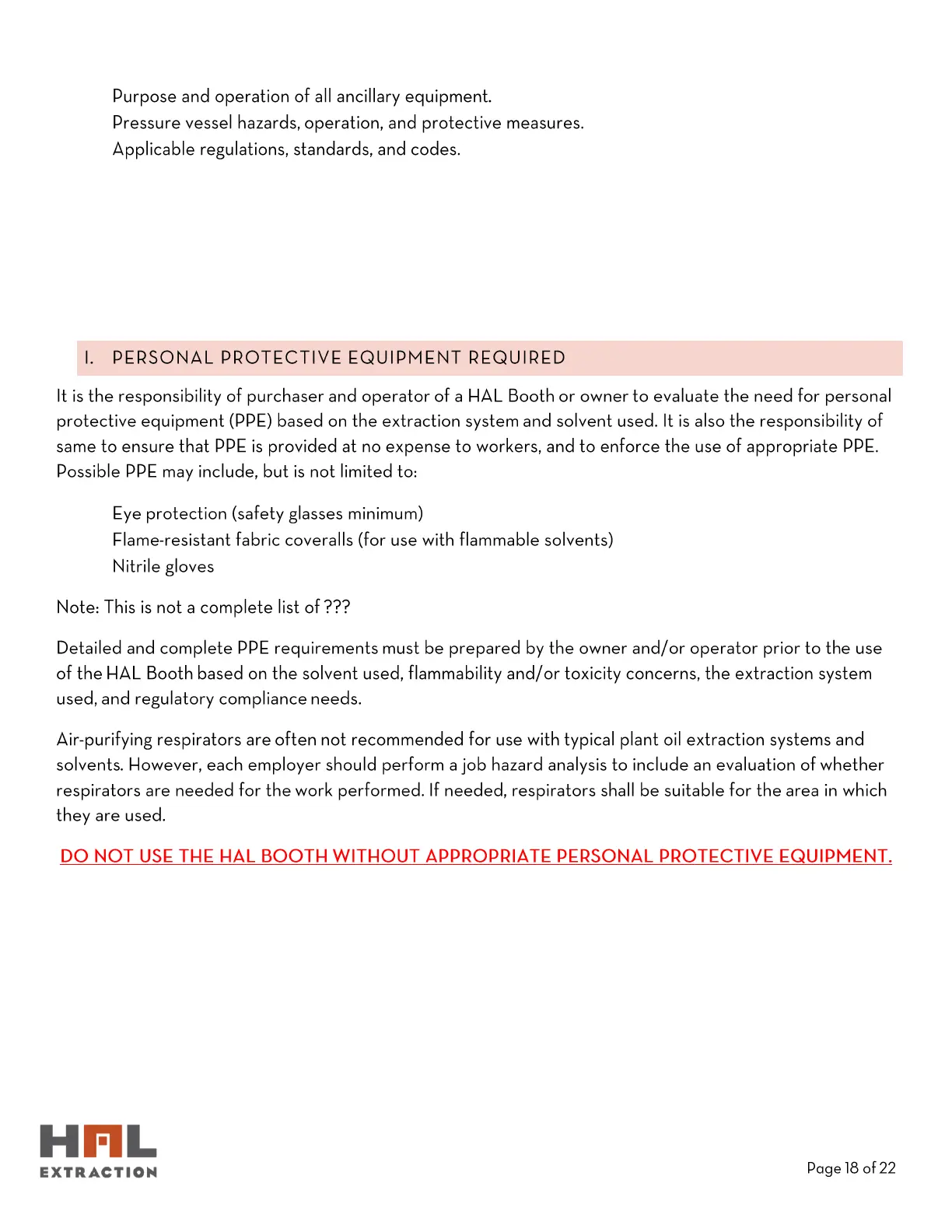 HAL Extraction 85U - I. PERSONAL PROTECTIVE EQUIPMENT