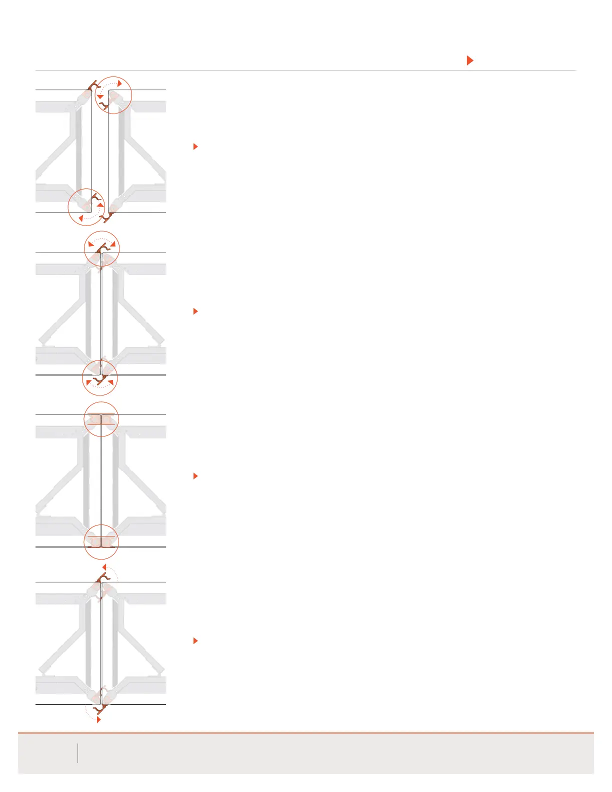 Move ganging latches out of stored position prior to positioning. The inside latch must be rotated to full lock.