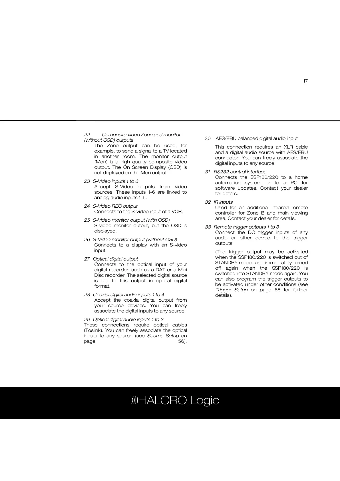 22 Composite video Zone and monitor