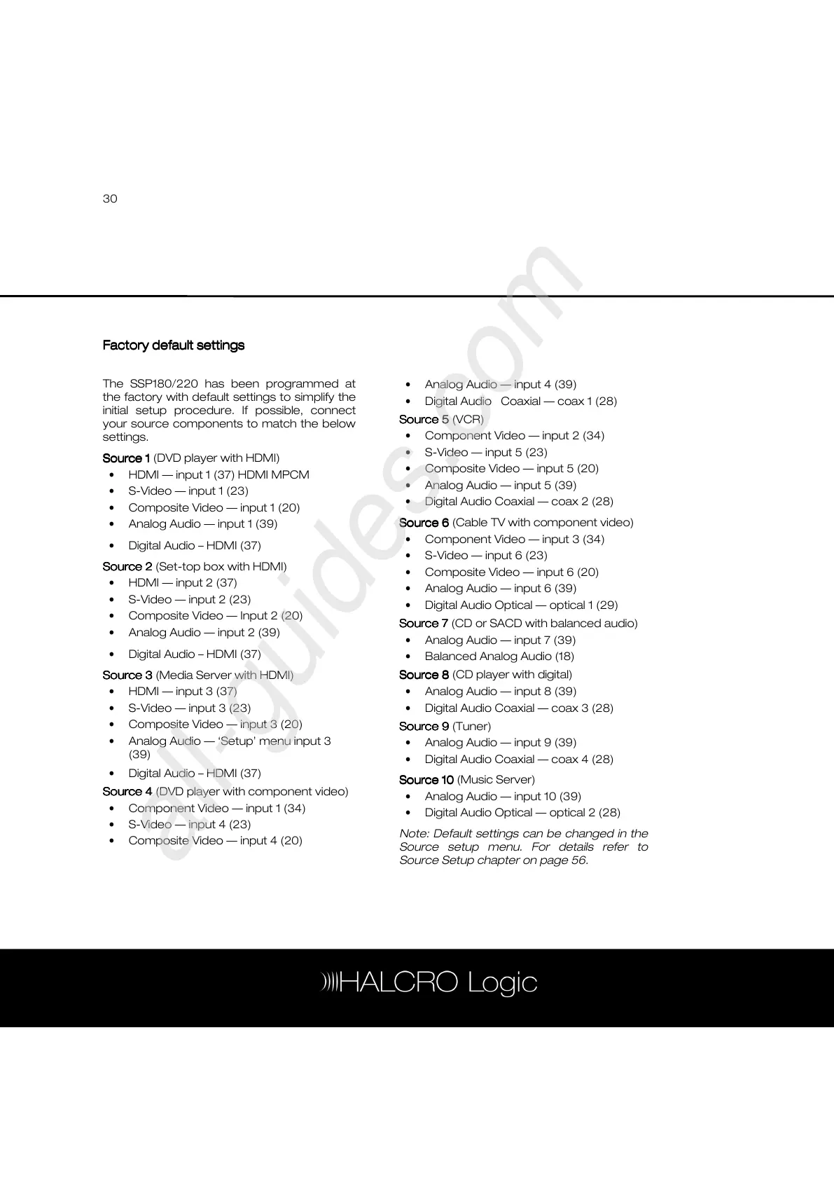 Source Setup chapter on page 56.
