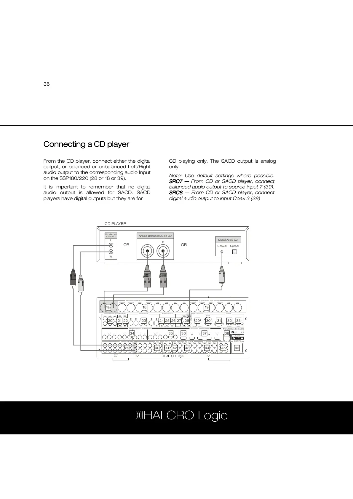 SRC7 — From CD or SACD player, connect