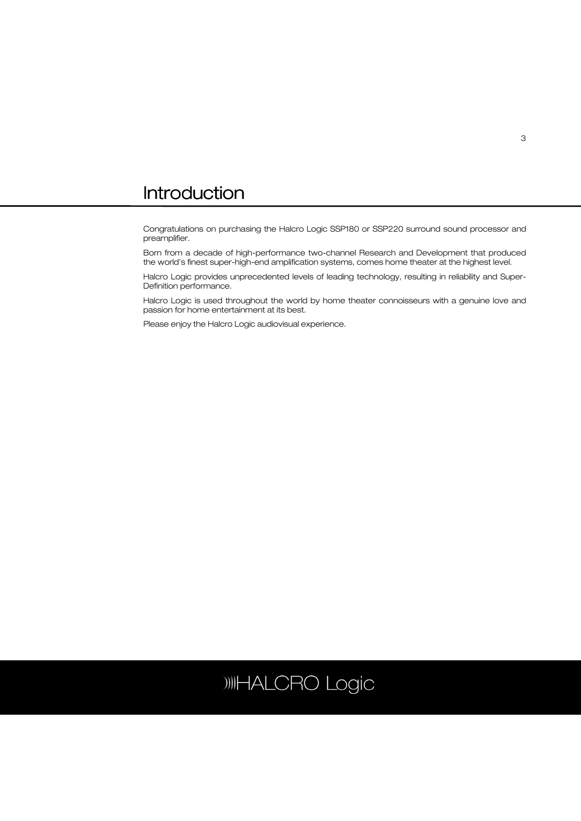 Congratulations on purchasing the Halcro Logic SSP180 or SSP220 surround sound processor and
