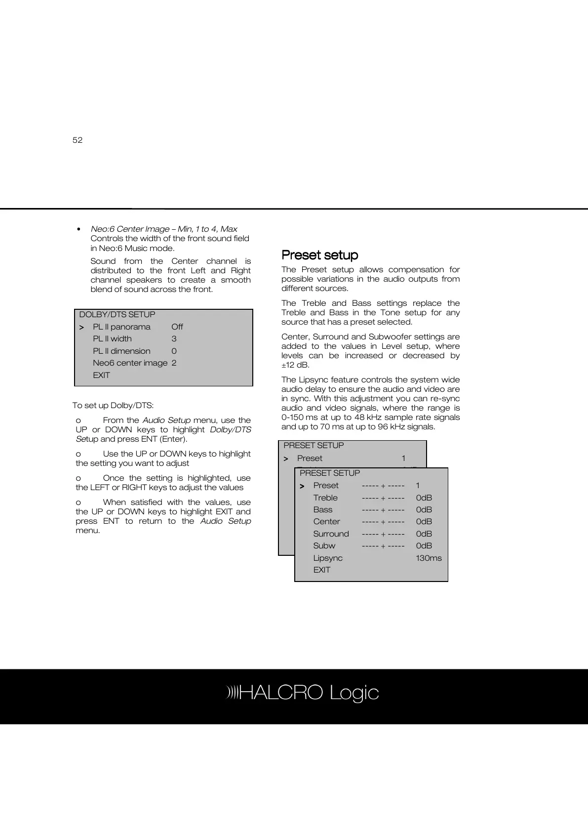 o From the Audio Setup menu, use the