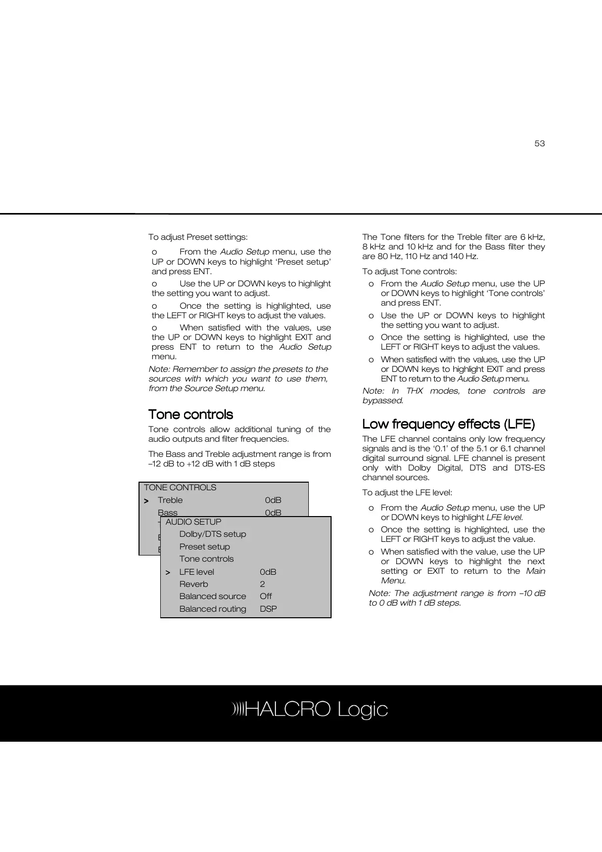 or DOWN keys to highlight LFE level.