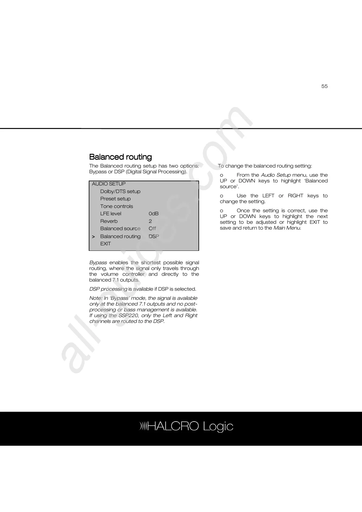 UP or DOWN keys to highlight ‘Balanced