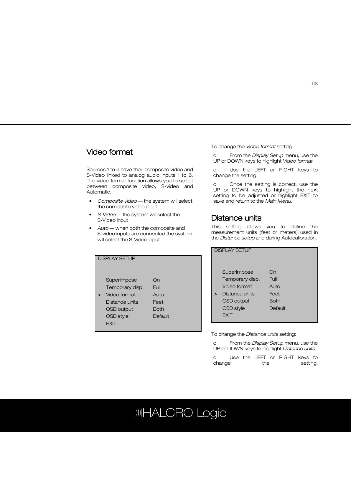 UP or DOWN keys to highlight Video format.
