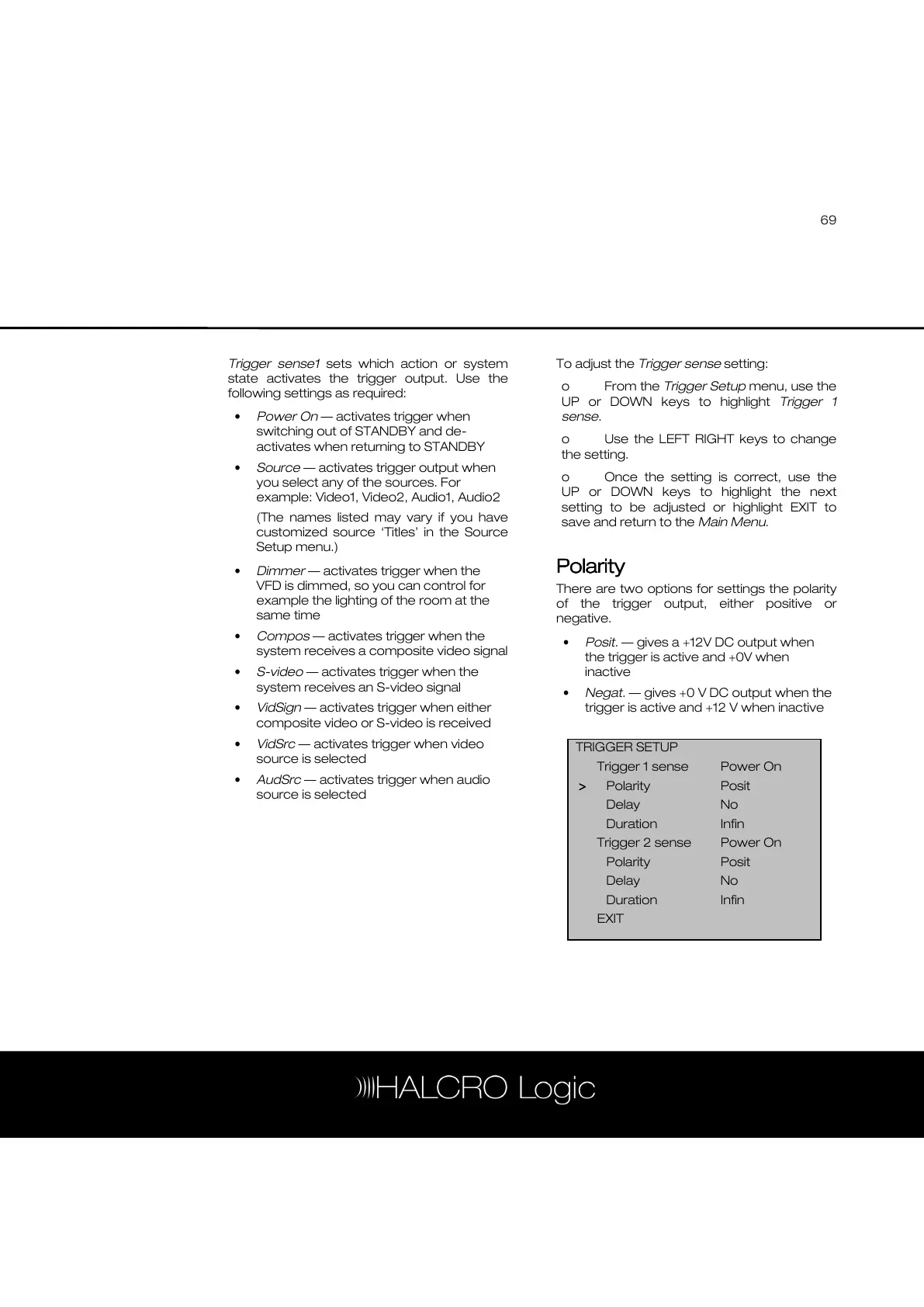 of the trigger output, either positive or