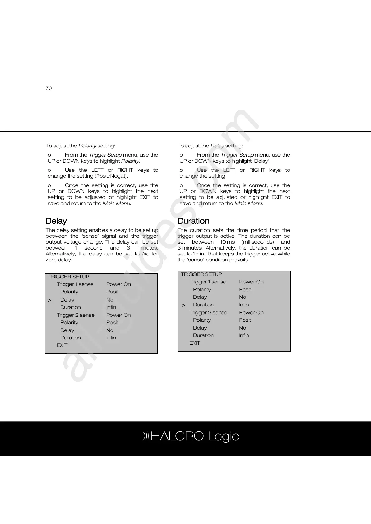 o From the Trigger Setup menu, use the